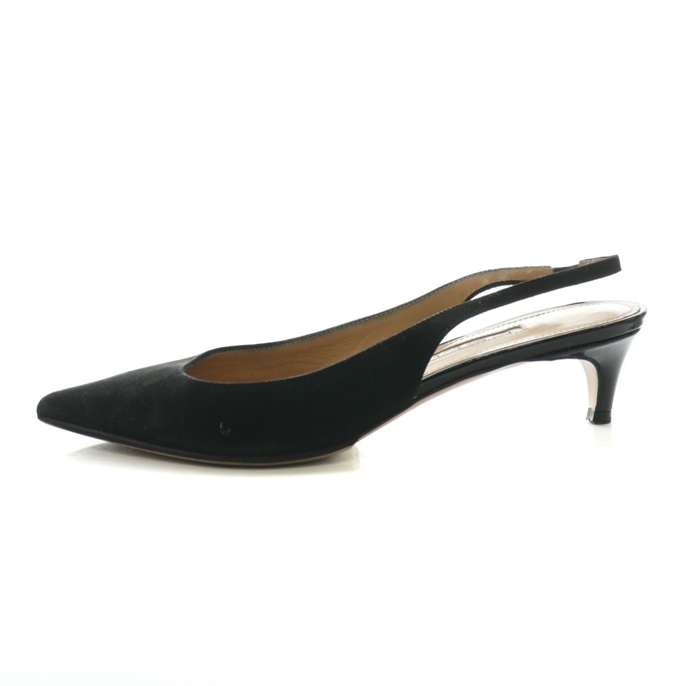 スエード×エナメル スリングバックパンプス