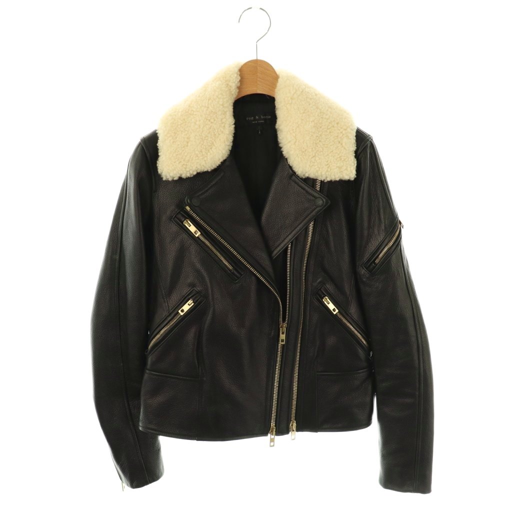 襟ボア カウレザー ライダース ジャケット