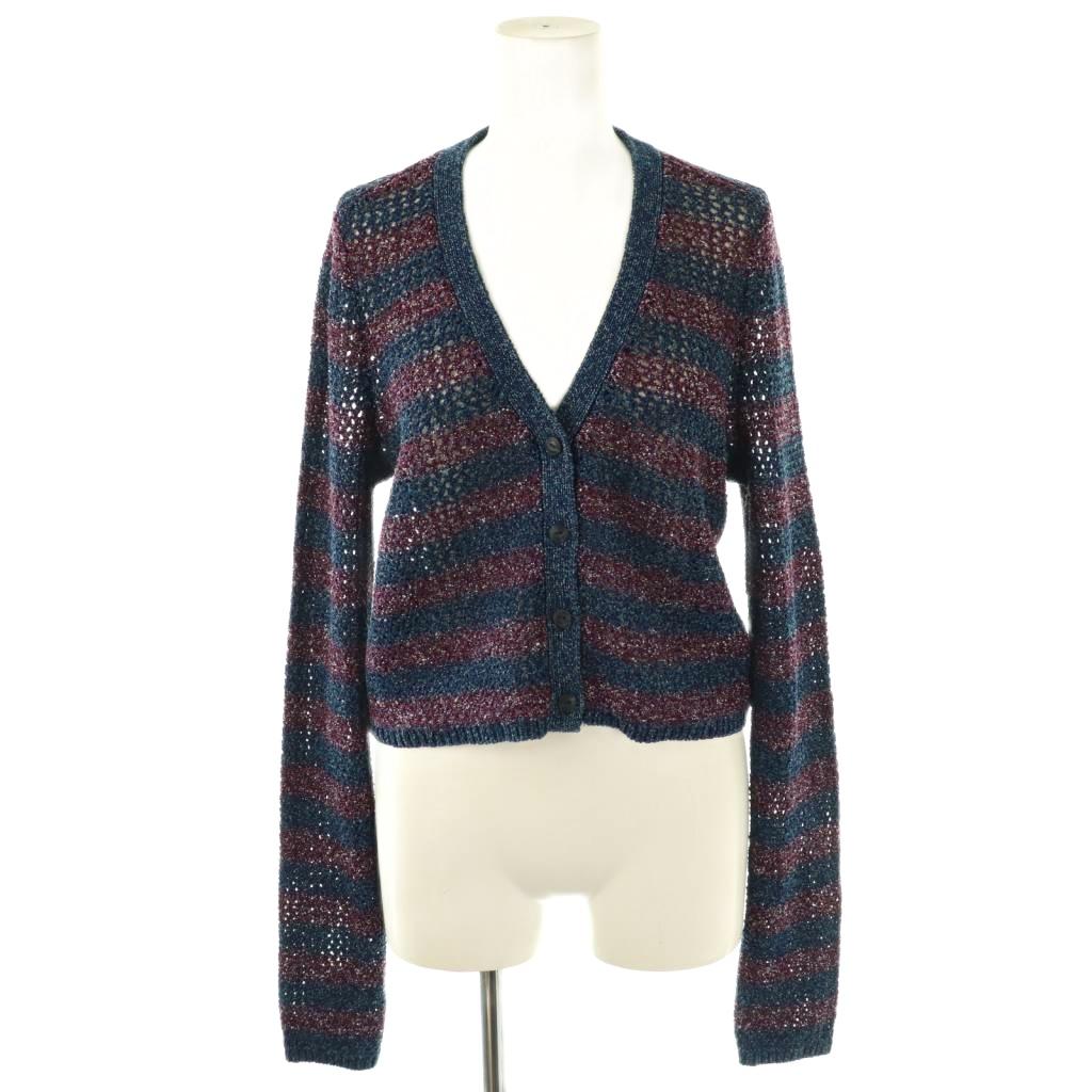 コットンメッシュボーダーVネックカーディガン