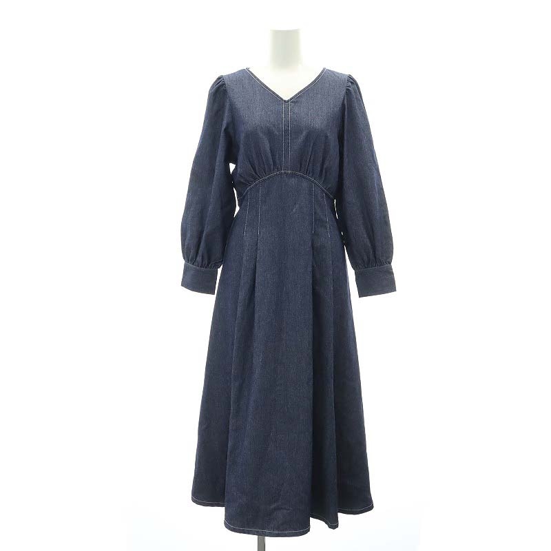 Vネック 長袖 デニムワンピース