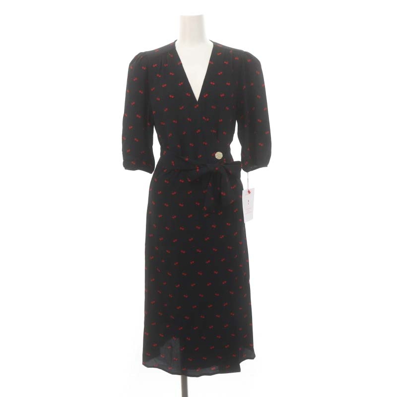 チェリー柄 カシュクールワンピース