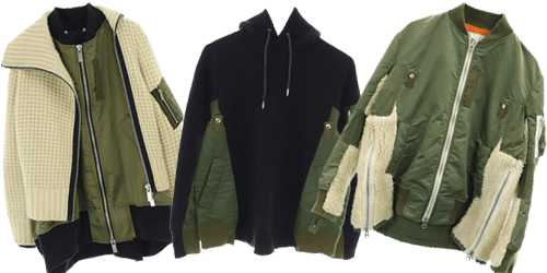 ミリタリー由来のMA-1の要素を異素材や異なるアイテムと融合させたアイテムは、個性的でありながら洗練された印象を放ち、サカイらしい世界観を楽しめるのが魅力。革新的でありながら日常に取り入れやすいデザインも多く、高い支持を集めています。