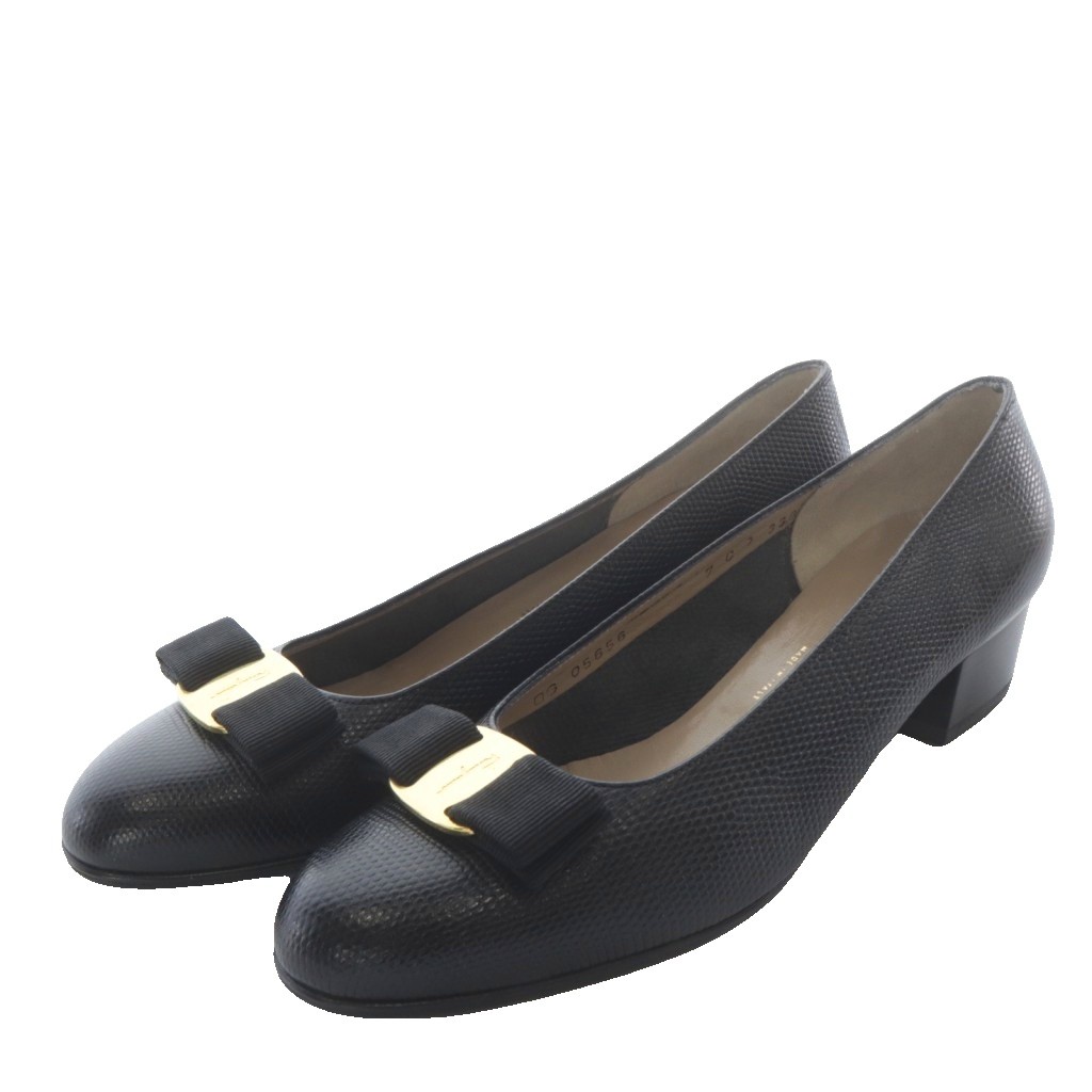 ヴァラ リボン リザード型押し パンプス