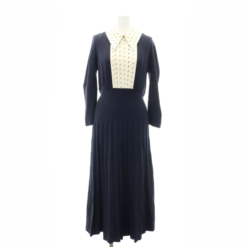 22AW Sustainaブラウスカラードッキングプリーツニットワンピース