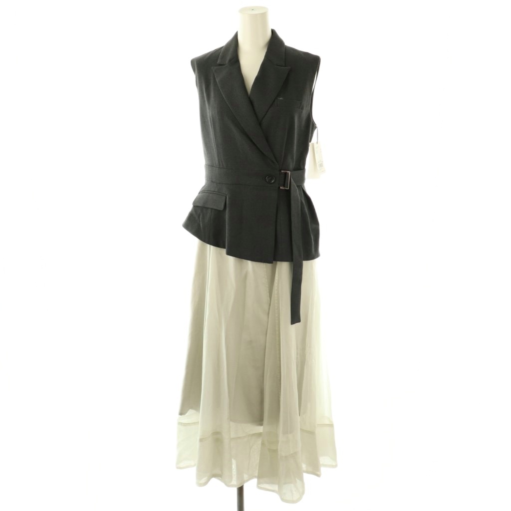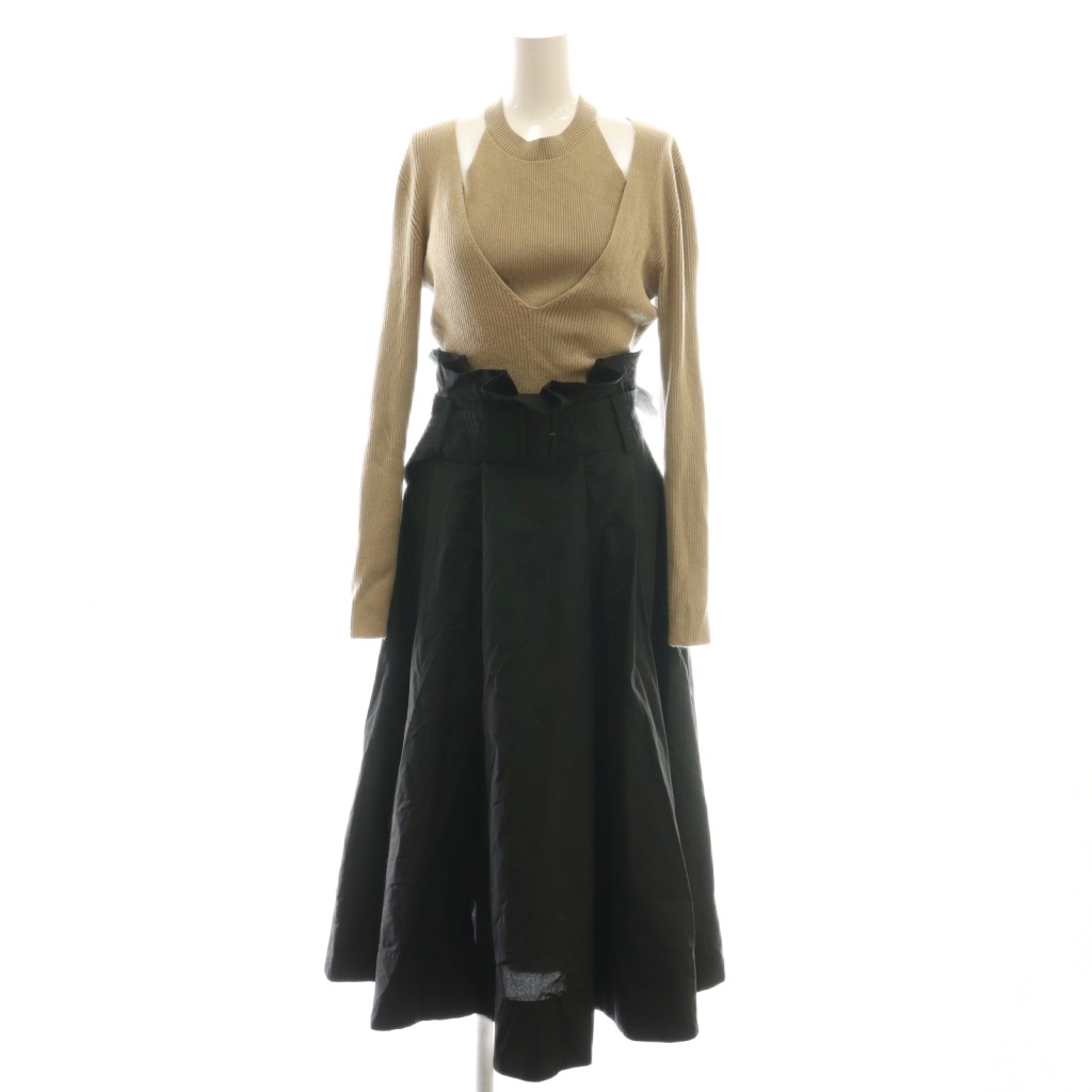 24SS タフタスカートドッキングニットワンピース