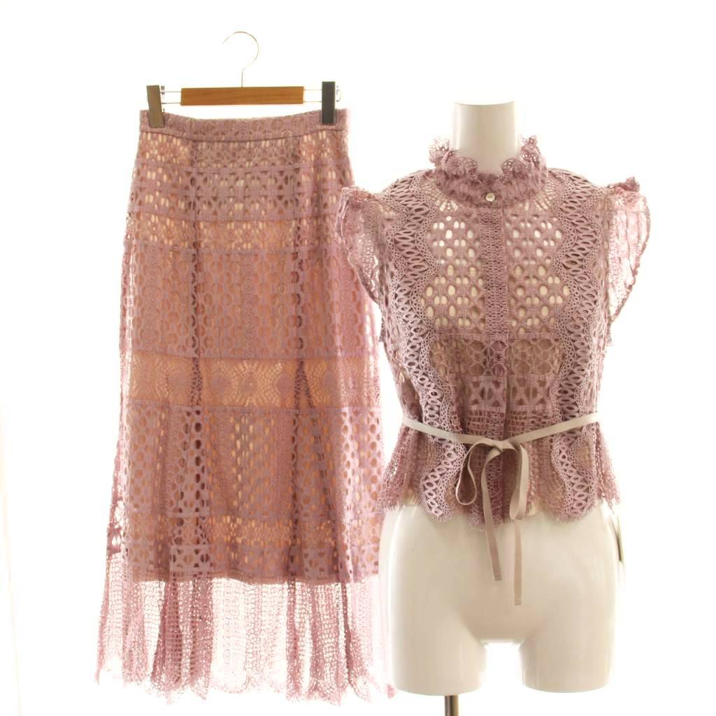 24SS ジャガードレース ペプラムブラウス マーメイドスカート セットアップ