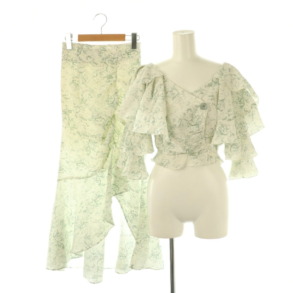 23SS フリルティアードクロップドブラウス シャーリングスリットマーメイドスカート セットアップ