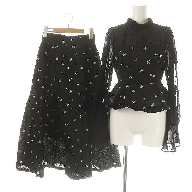 24SS ジャガードペプラムベアドッキング エンボスジャガードボリュームギャザースカート セット