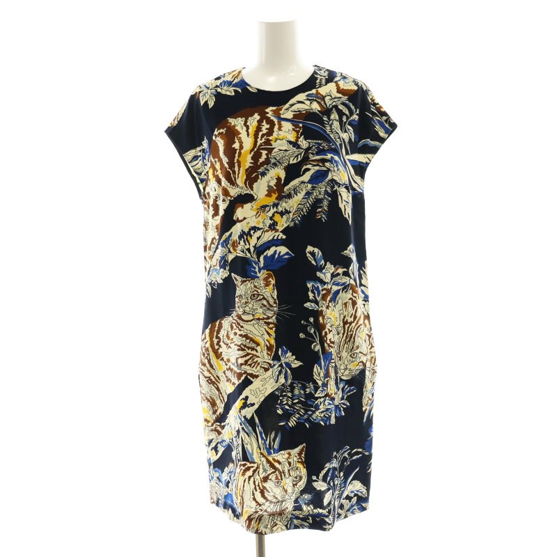 総柄 猫 ひざ丈 ワンピース