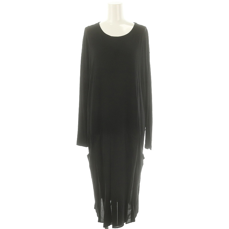 長袖 ストレッチ プリーツワンピース