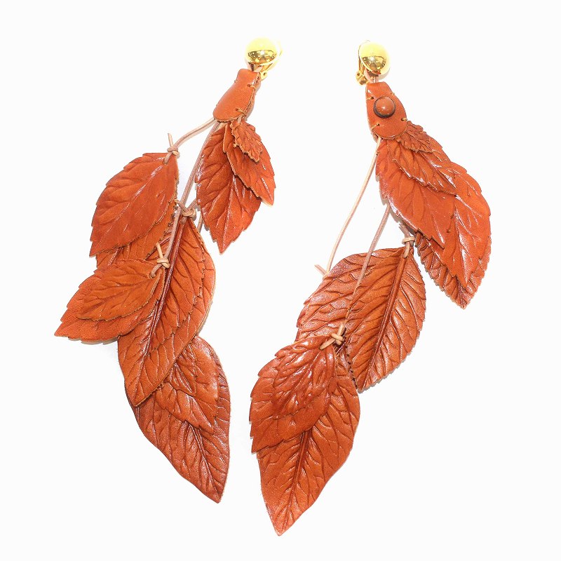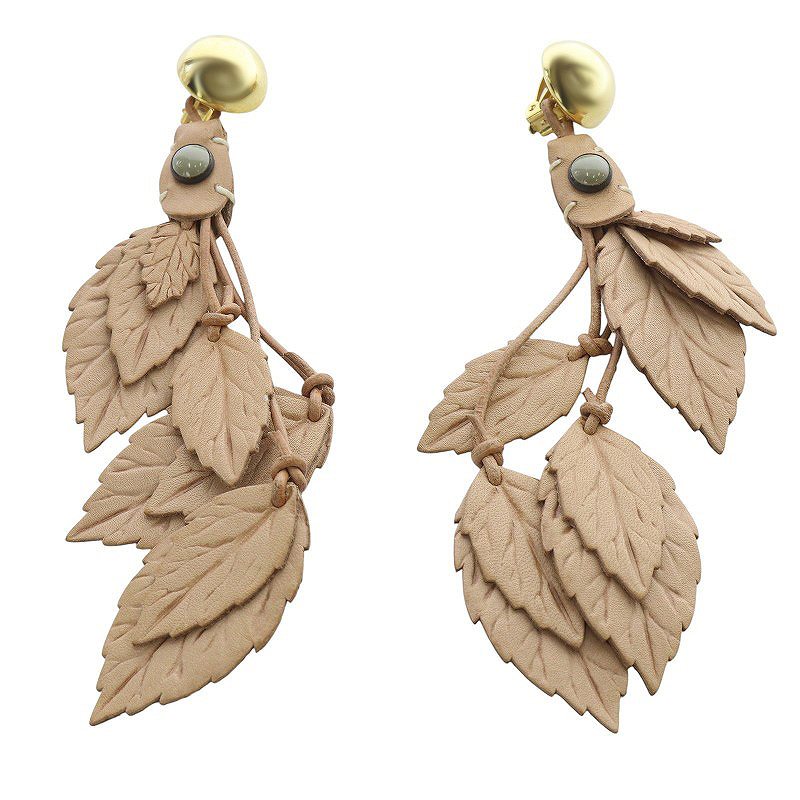 レザー リーフ イヤリング