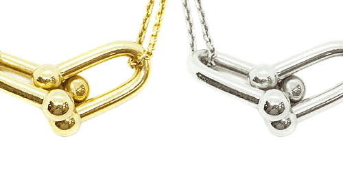 ハードウェアコレクションは、スターリングシルバーやゴールドを中心に展開されています。ティファニーがラグジュアリー素材として確立したスターリングシルバーは、日常に寄り添う上品な輝きが魅力で、ゴールドは華やかさとエレガントな存在感を引き立てます。