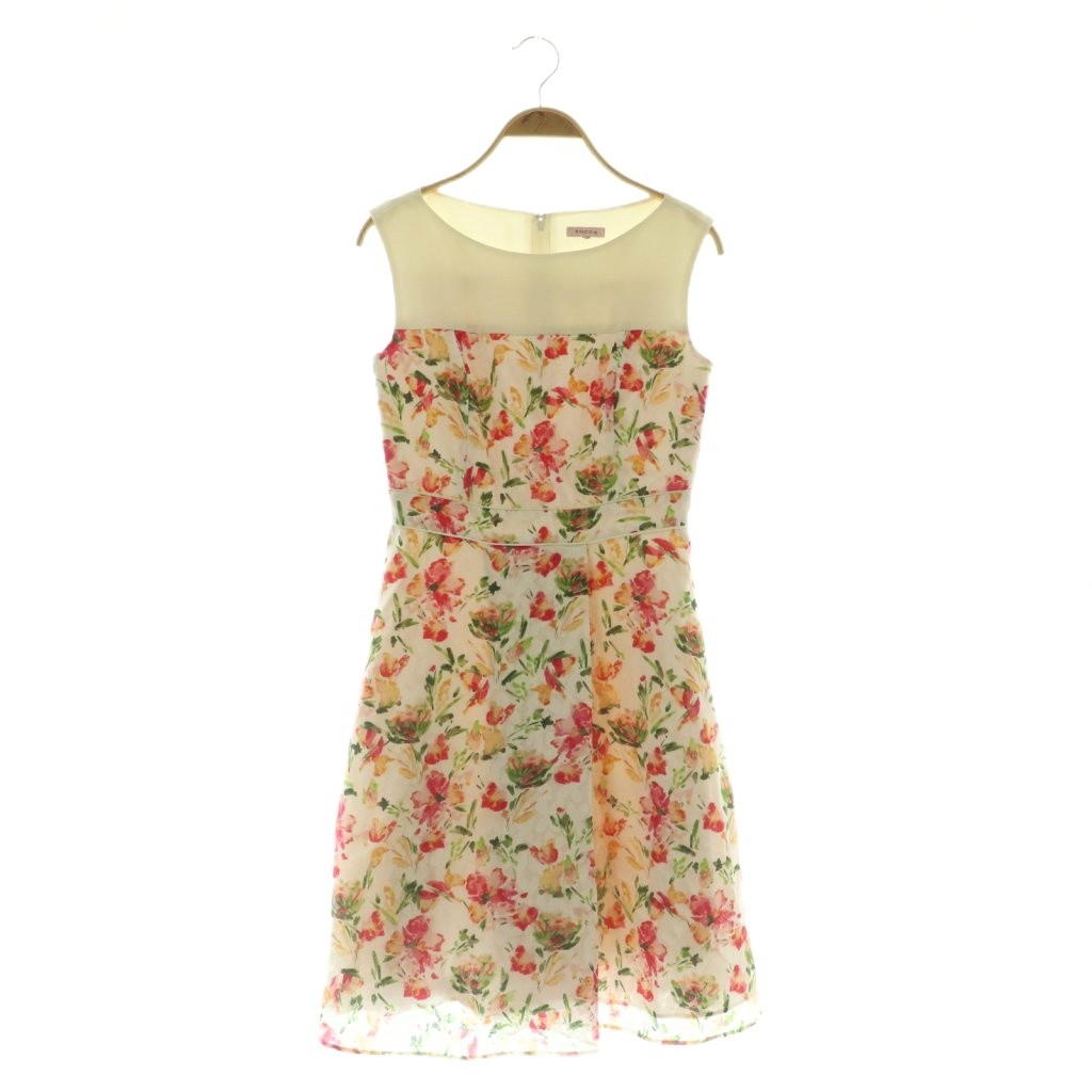 花柄 切替 ノースリーブ ワンピース