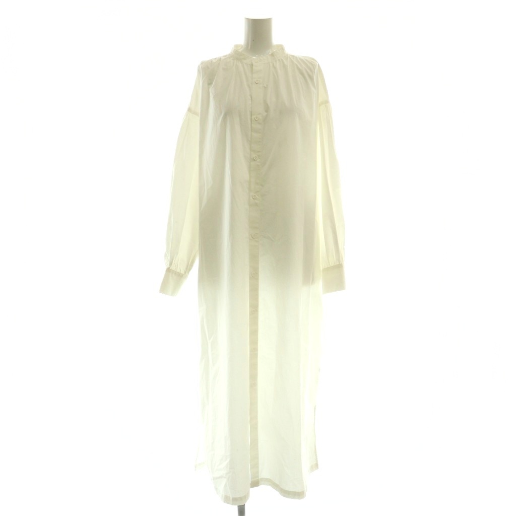 コットンタイプライターバンドカラーギャザーシャツワンピース