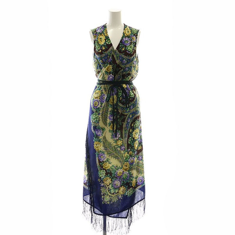 Printed Wrap Scarf Dress フリンジスカーフデザインワンピース