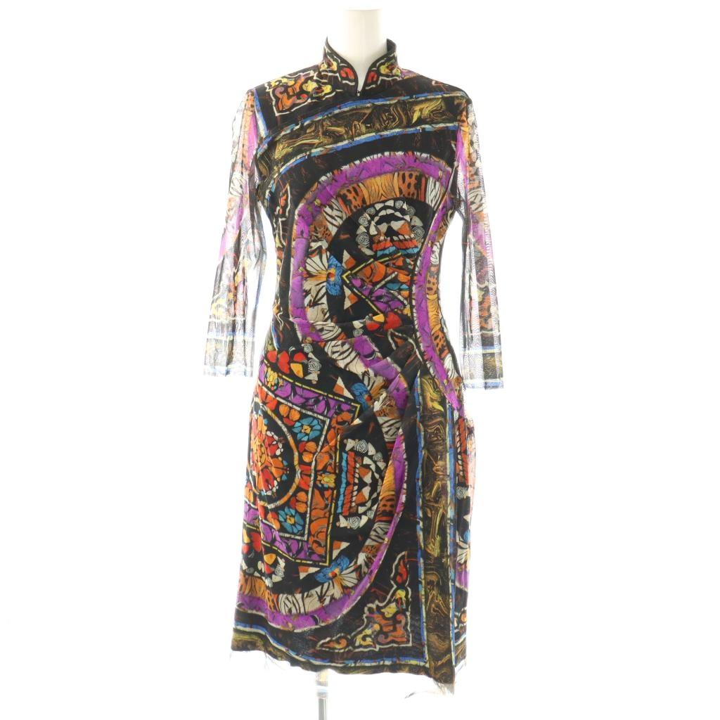 チャイナカラー 総柄 パワーネット ワンピース