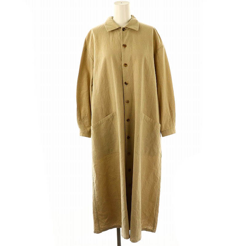 リネン コットン ステンカラーロングコート