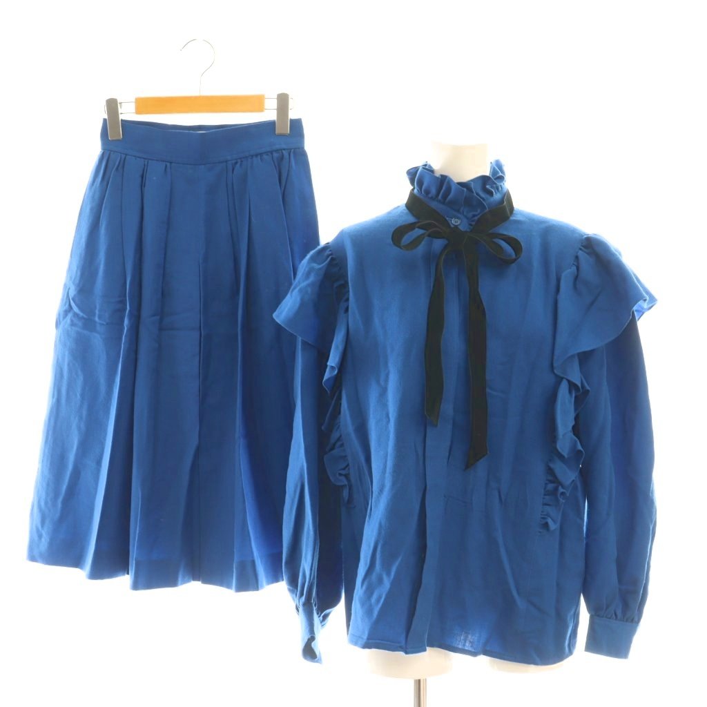 リボン付き ウール フリル ブラウス スカート セットアップ